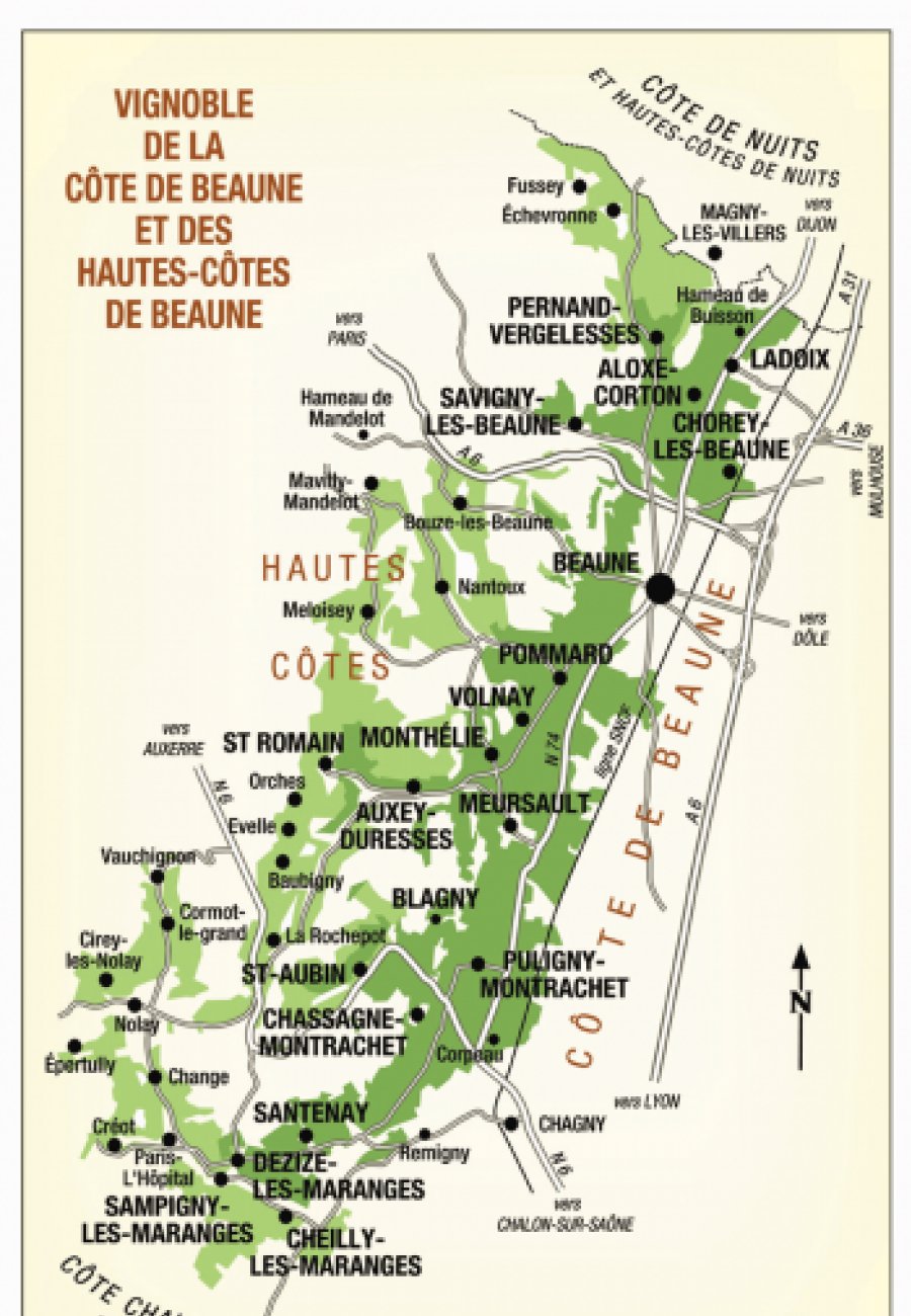 Ten zuidoosten van Chablis ligt de wijnregio Côte d’Or. De Côte d’Or is onderverdeeld in twee stukken, de Côte de Nuits in het noorden en de Côte de Beaune in het zuiden.