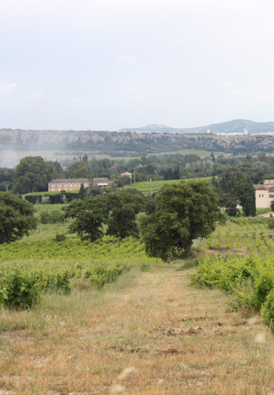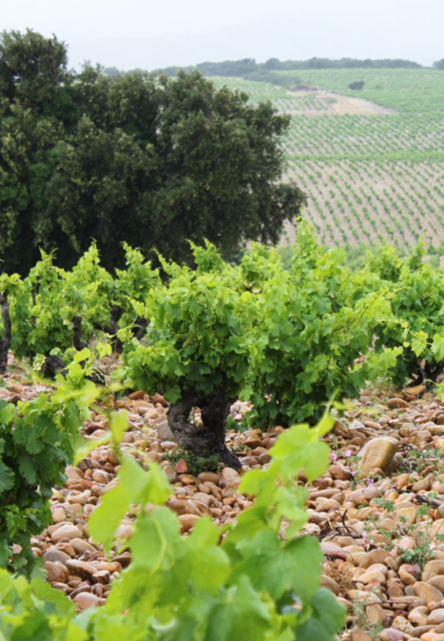 De rode Lirac bestaat voornamelijk uit Grenache aangevuld met Mourvèdre en Syrah.